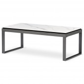 Stůl konferenční, deska slinutá keramika 120x60, bílý mramor, nohy šedý kov
