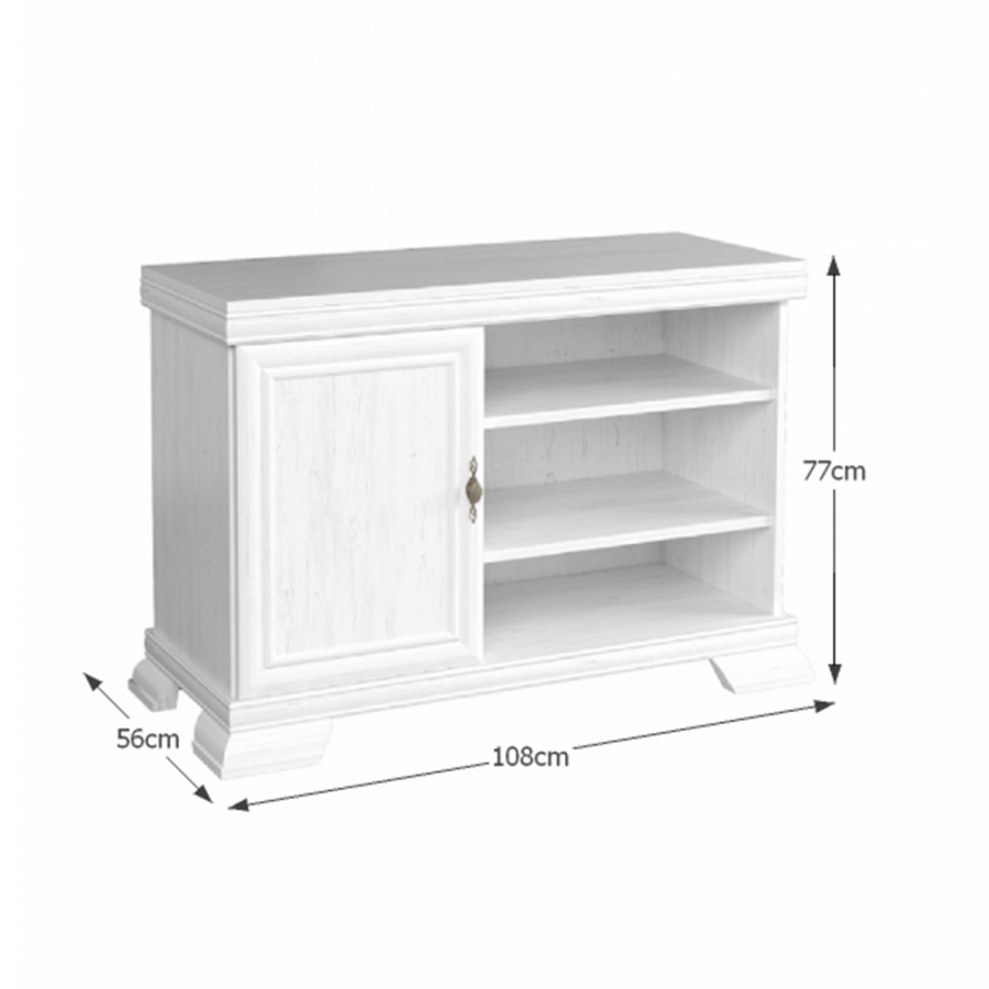 RTV stolek KRT KORA. Barevné provedení sosna andersen. Materiál laminovaná DTD, MDF, kov. Rozměry (ŠxHxV): 108x56x77 cm